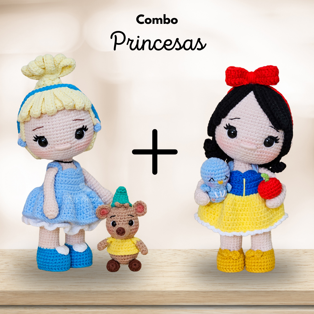 Transforme seu crochê em pura magia com este combo encantador! Você receberá duas receitas completas em PDF para confeccionar as princesas Branca de Neve e Cinderela, ambas com acabamento delicado, proporções perfeitas para decorar ou vender, e riquíssimos detalhes que encantam qualquer pessoa!