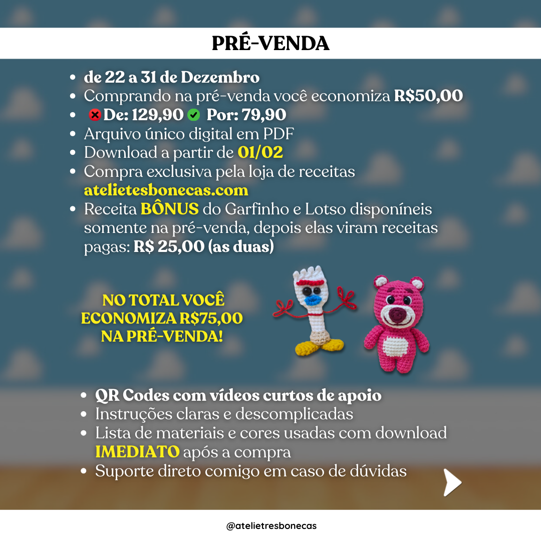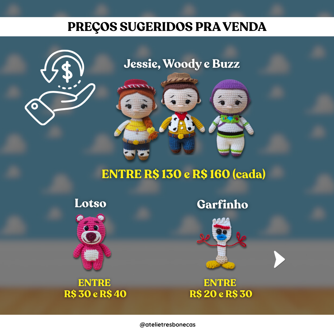 ⚠️ Importante: as receitas dos personagens Woody, Buzz e Jessie NÃO serão vendidas separadamente após a Pré-venda, estando disponíveis exclusivamente neste e-book.