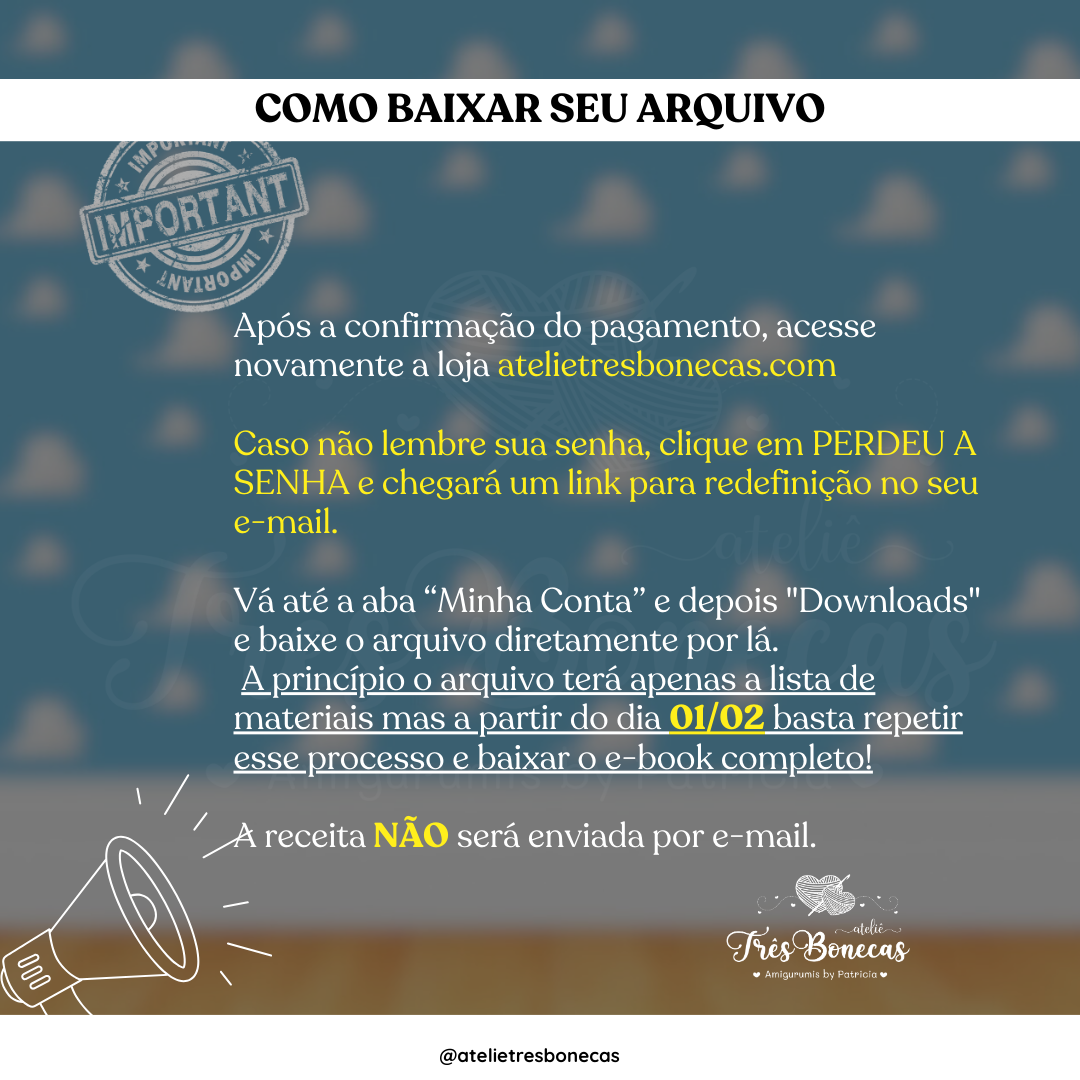 Neste e-book, você encontrará receitas completas, com explicações claras e acessíveis, ideais tanto para quem já tem prática quanto para quem quer evoluir nos amigurumis.