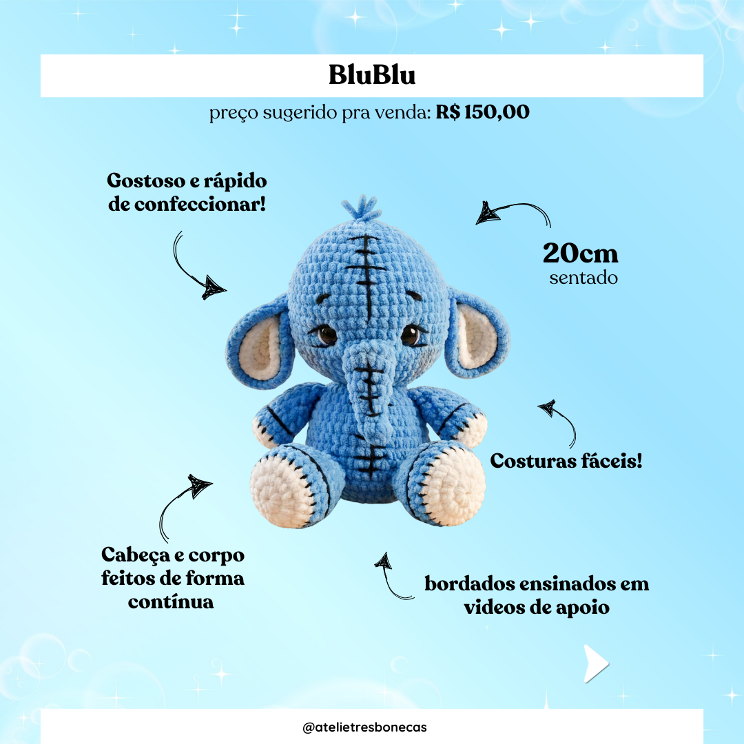 Blublu é o elefante mais fofo do amigurumi, feito no macio fio chenille.