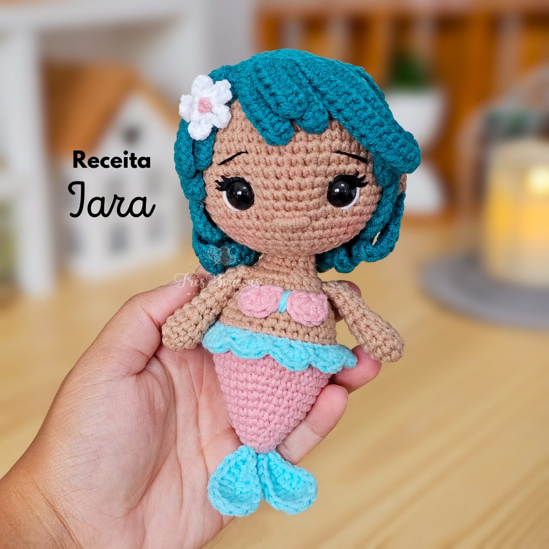 Mergulhe no mundo encantado do crochê com esta receita em PDF da Sereia Iara em amigurumi! Um projeto cheio de magia e delicadeza, com aproximadamente 23 cm de altura, perfeito para quem ama criar personagens místicos e cheios de personalidade. ‍♀️✨
