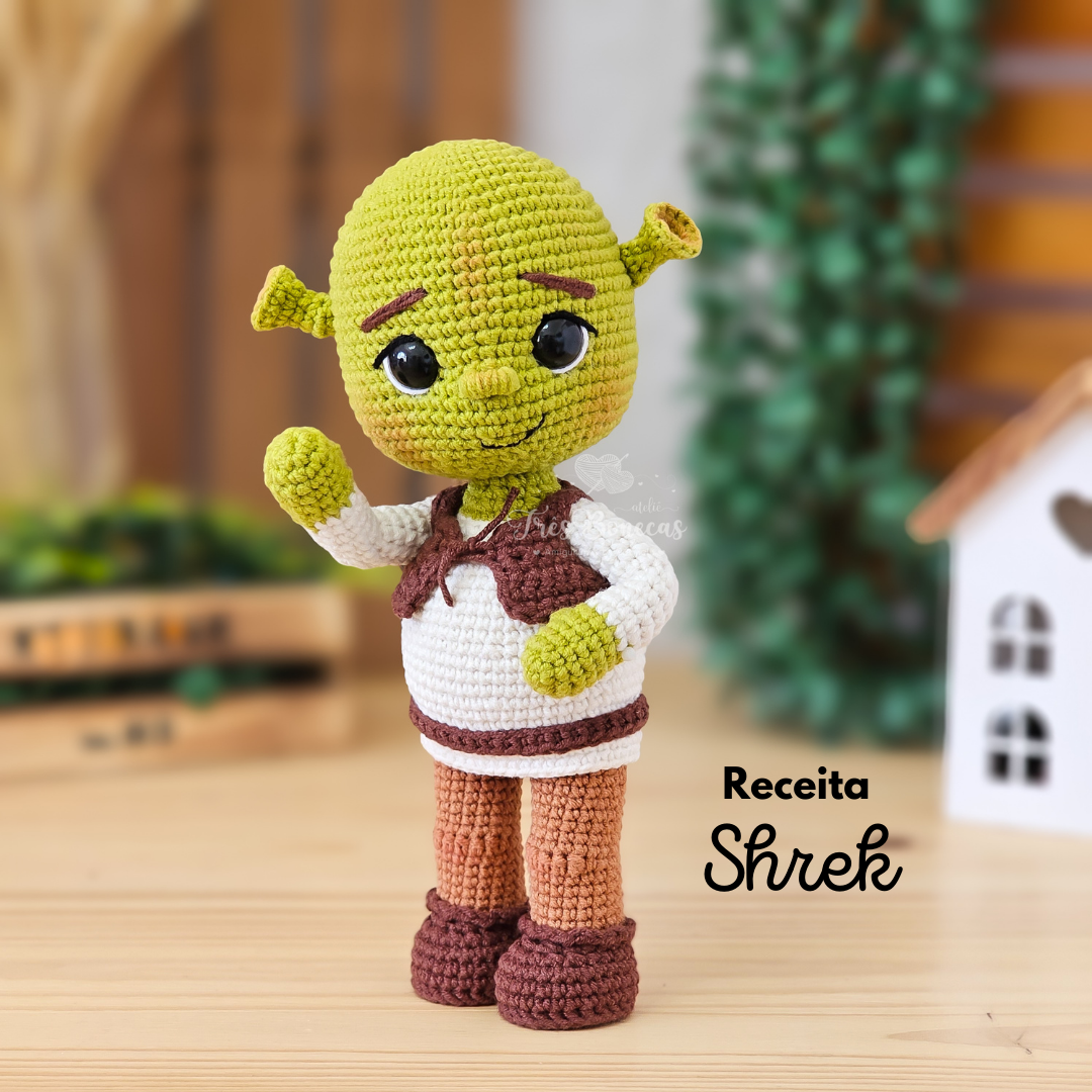 Transforme linhas em magia com esta receita em PDF do Shrek em amigurumi .