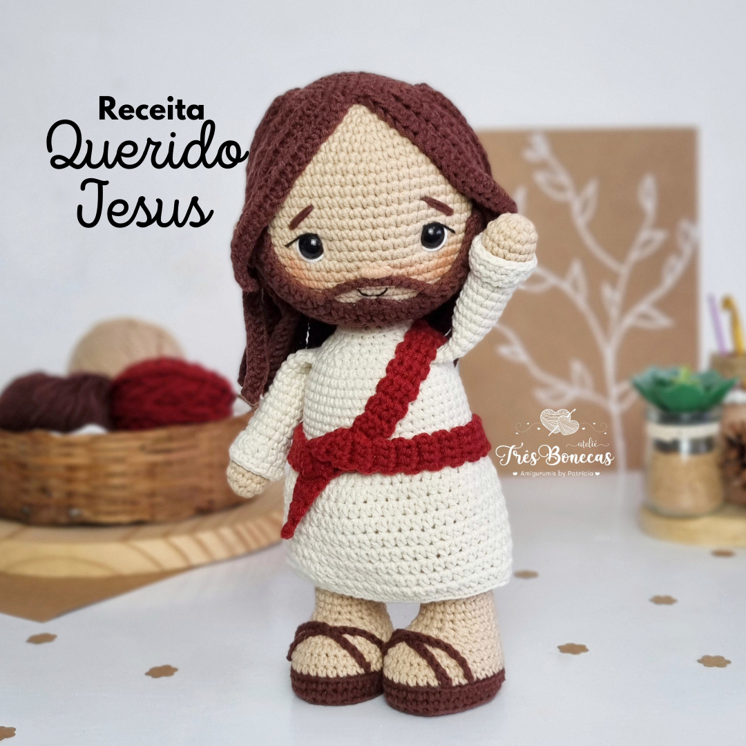 Um boneco impecável do Nosso Melhor Amigo. Nosso Querido Jesus! Um padrão rápido, fácil e descomplicado de produzir. Sua peça pronta vai ficar com cerca de 27cm se feito com os materiais que eu indico na receita.